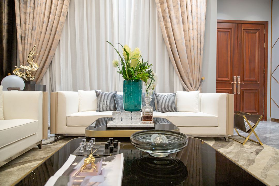 客廳的設(shè)計注重舒適與美觀,選用流暢線條和舒適坐感的米色沙發(fā),深色交錯矮茶幾,豐富空間的層次。