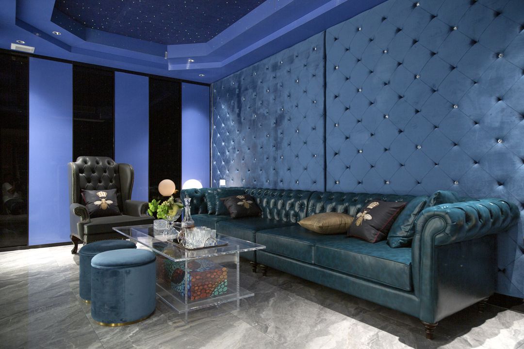 影視廳墻面以藍色為主色調(diào),搭配舒適的沙發(fā)和豪華的音響設(shè)備,讓業(yè)主在家就能享受影院級的視聽體驗。高級隔音材料,有效隔絕外界噪音,不擔心打擾鄰居。