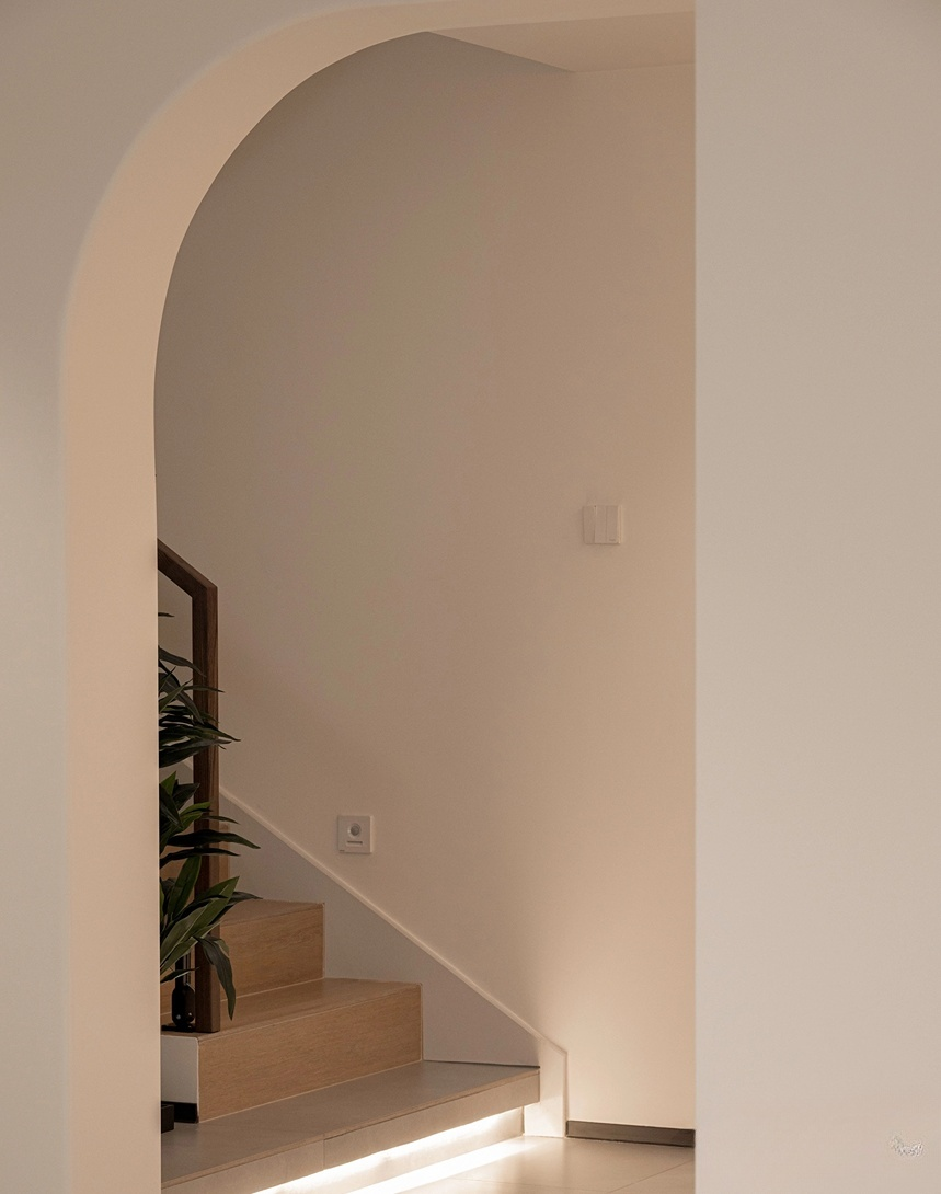 原木風(fēng)樓梯和拱門(mén)是氛圍感最強(qiáng)CP,木質(zhì)紋理以及層層疊疊的樓梯,搭配上綠植的枝枝蔓蔓,一步一景,是中式浪漫!是獨(dú)特的藝術(shù)感!
