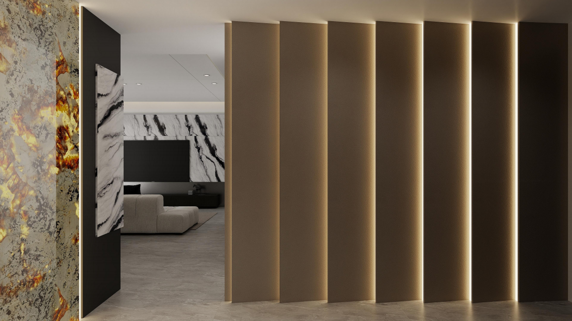 沙發(fā)背景與電視背景:沙發(fā)背景簡潔,淺灰色的沙發(fā)搭配黑色抱枕,舒適又時尚。電視背景墻采用黑白大理石拼接設(shè)計(jì),與整體風(fēng)格相呼應(yīng),提升了空間的質(zhì)感。
