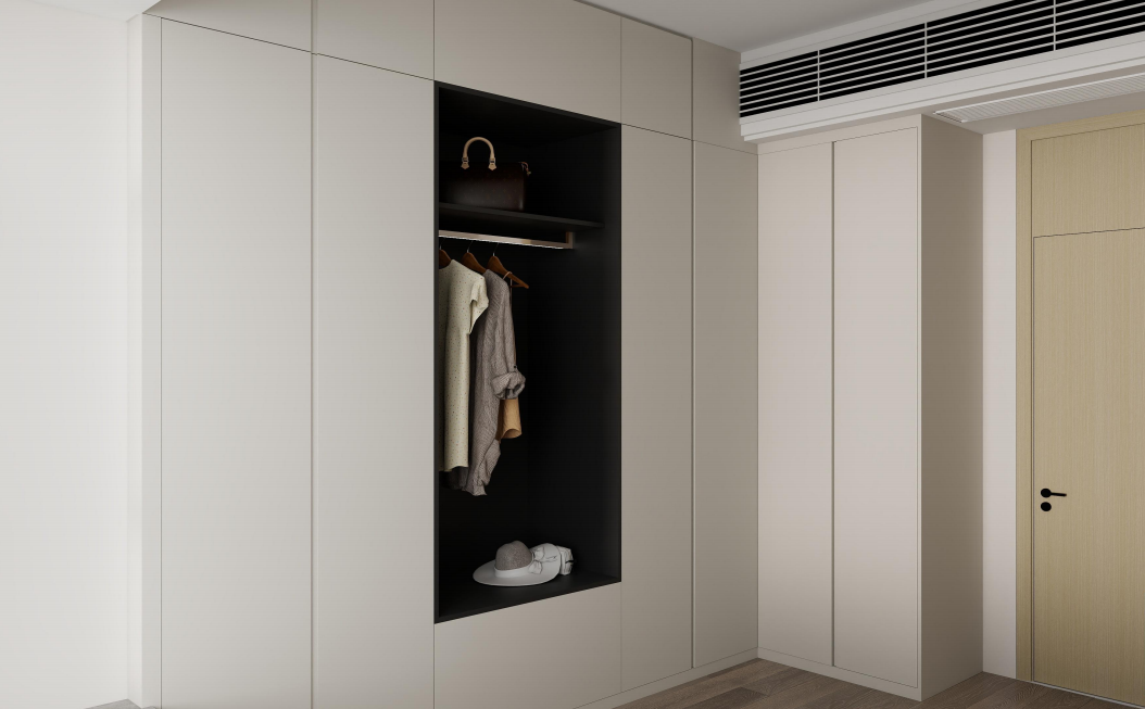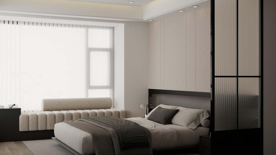 次臥的設(shè)計(jì)同樣簡約,衣柜與墻面融合,保證了空間的整潔。房間的色彩搭配柔和,營造出舒適的休息環(huán)境。