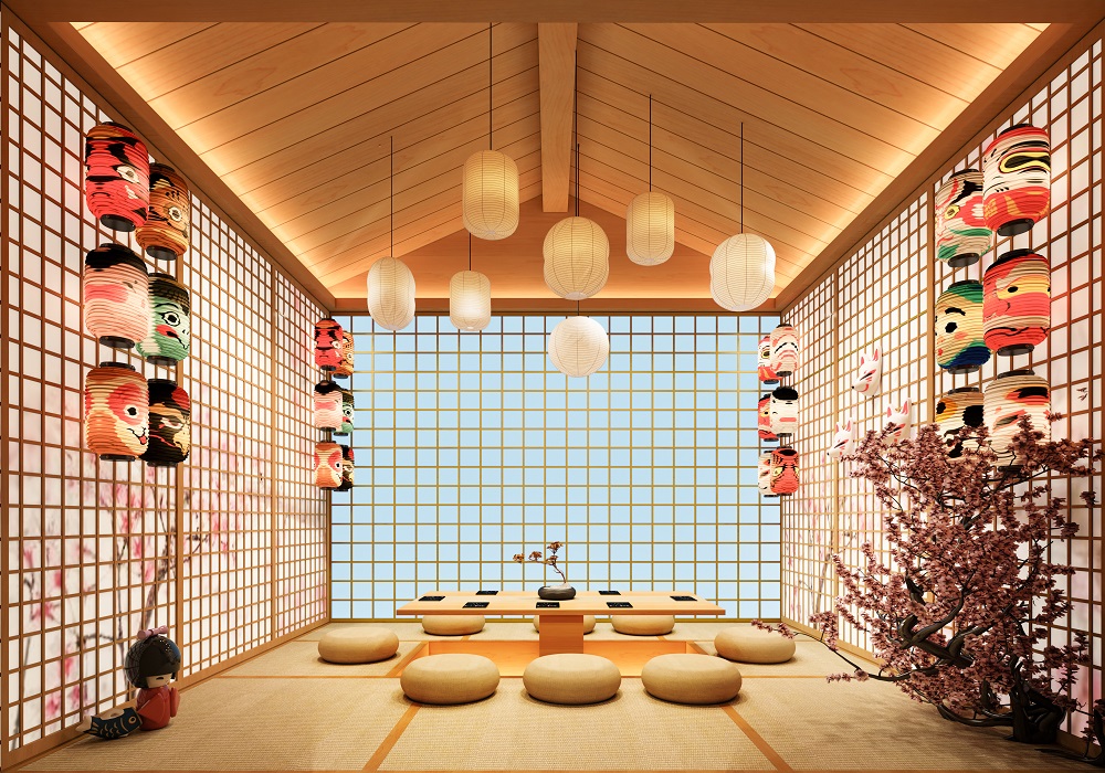 日式和風(fēng):木質(zhì)結(jié)構(gòu)、日式格子門窗、紙燈籠以及櫻花、面具等裝飾,營造出寧靜雅致的日式氛圍,適合日式懸疑、情感類劇本,使玩家感受日本傳統(tǒng)文化的魅力。