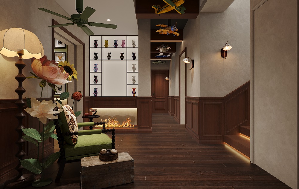 復(fù)古港式風(fēng):深木色墻板與地板奠定復(fù)古基調(diào),港風(fēng)海報、復(fù)古吊燈和窗簾等元素,重現(xiàn)舊時光的獨特韻味,適用于懷舊、情感類劇本,幫助玩家快速代入特定時代背景。