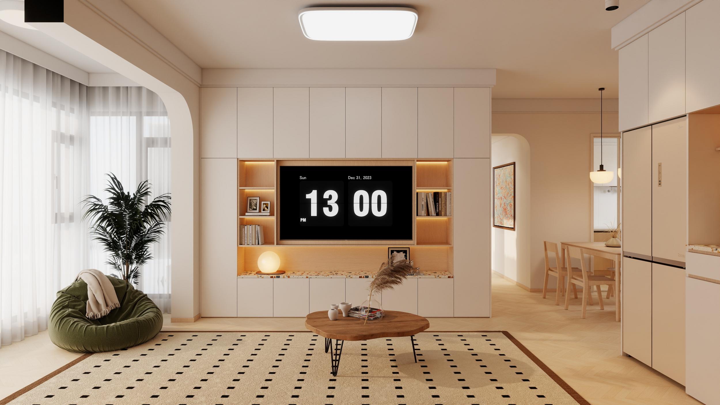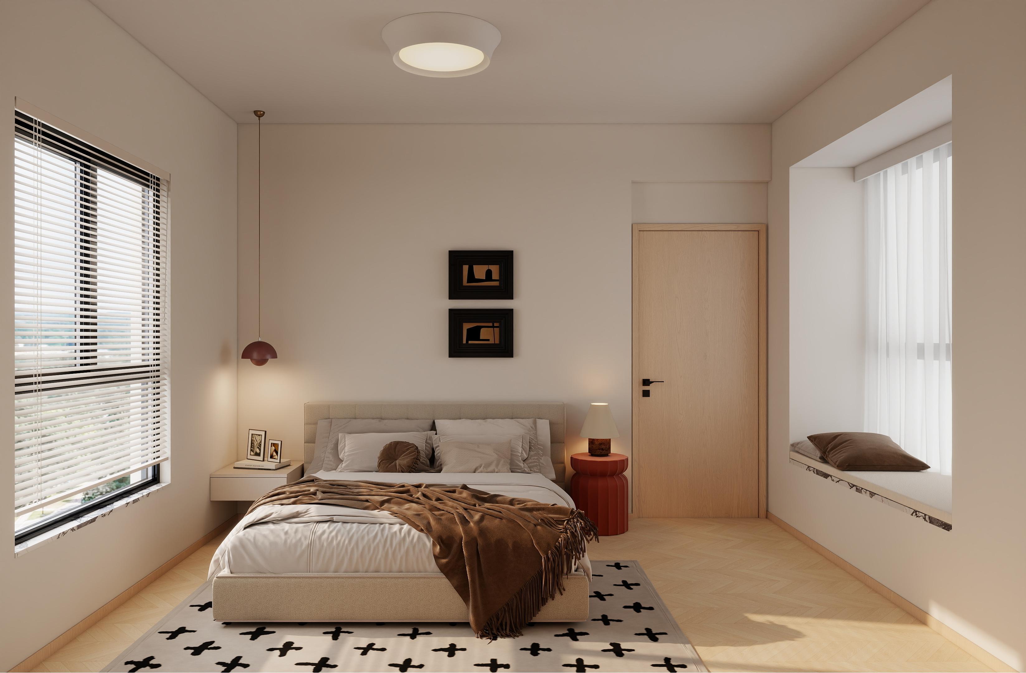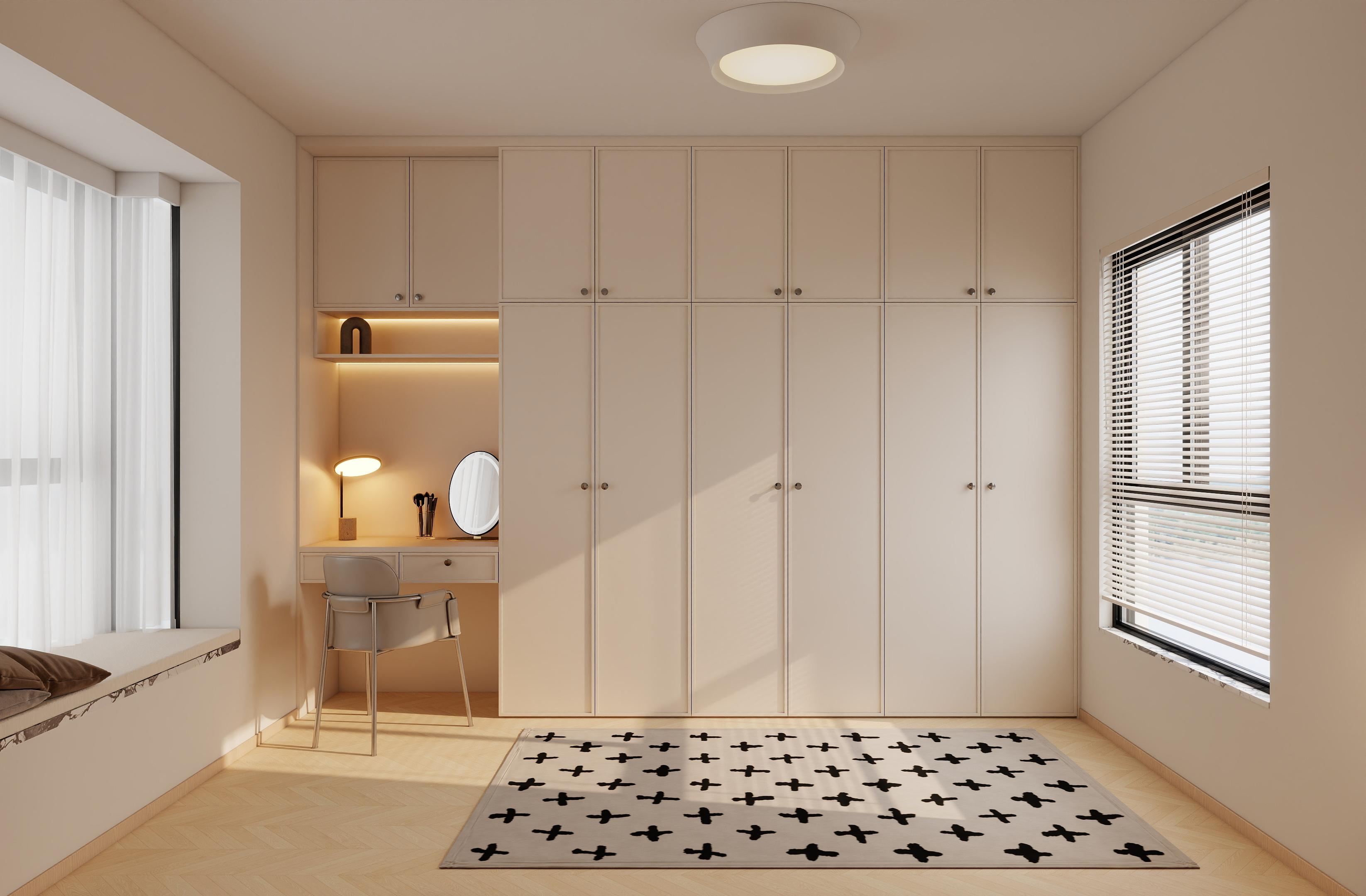 臥室:極簡(jiǎn)奶油風(fēng),奶白墻面搭配溫潤(rùn)原木,靜謐柔和,主打舒適休憩氛圍。