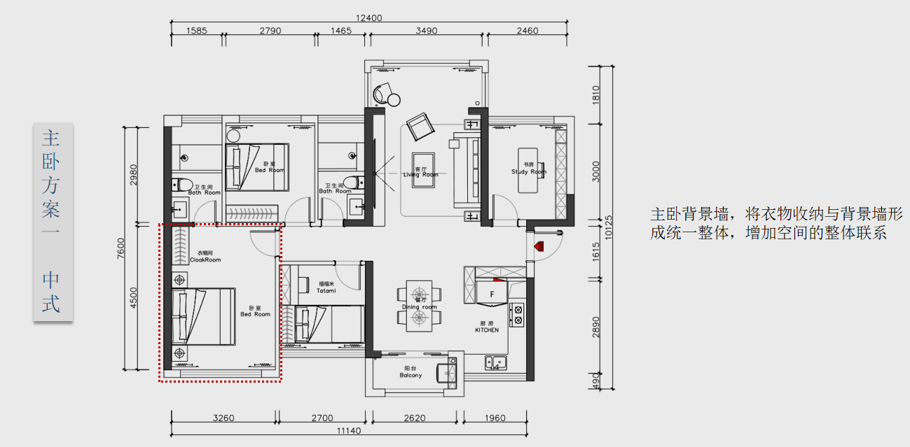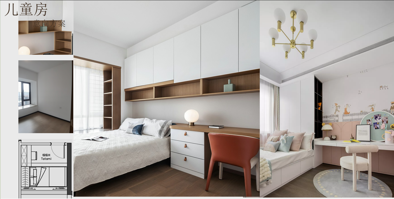 客戶需求點(diǎn):房子不經(jīng)常住,偶爾過來,對(duì)于儲(chǔ)物要求不高;需要酒柜,兒童房增加榻榻米帶書桌。