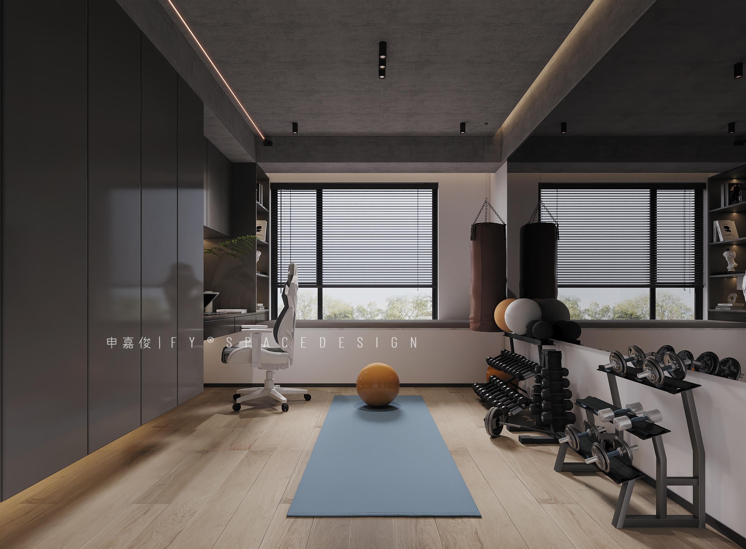 利用窗戶旁邊的空間進(jìn)行健身器材的擺放,既保證了充足的自然采光,又不會讓空間顯得擁擠。