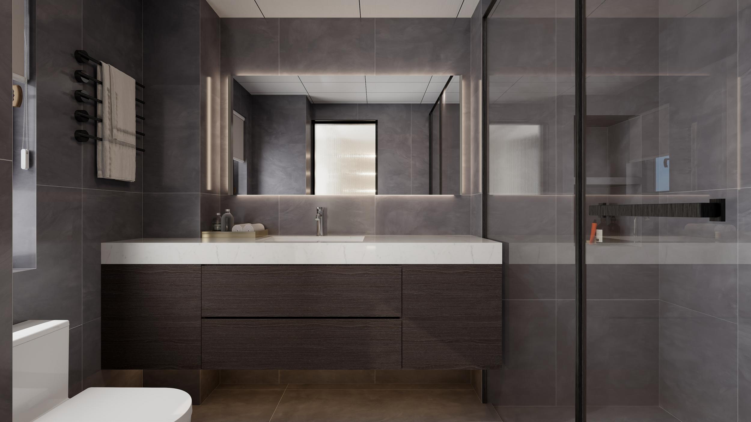 洗漱間整體深色系的運(yùn)用不僅讓洗漱間顯得更加沉穩(wěn)大氣,還能有效地營(yíng)造出一種私密而寧靜的氛圍。