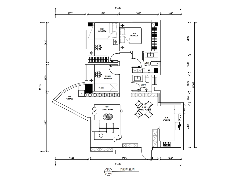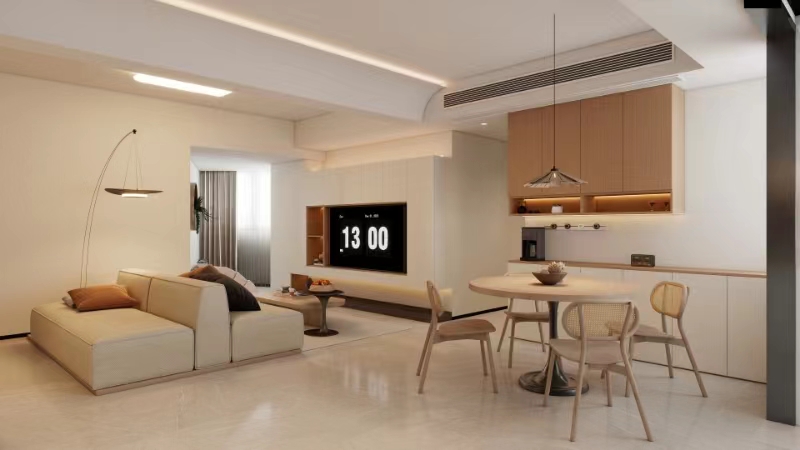 餐客廳采用白和木色等中性色調(diào),通過桌子、沙發(fā),茶幾的不同材質(zhì)搭配,增加空間的層次感和豐富性。