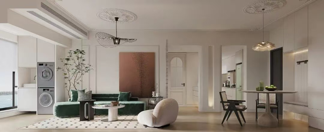 輕法式奶油風(fēng)的色彩以奶油色為主調(diào),這種顏色如同溫暖的陽光灑在身上,給人一種柔和、舒適的感覺。奶油色可以大面積地運用在墻面、地面和家具上,營造出整體的溫馨氛圍。
