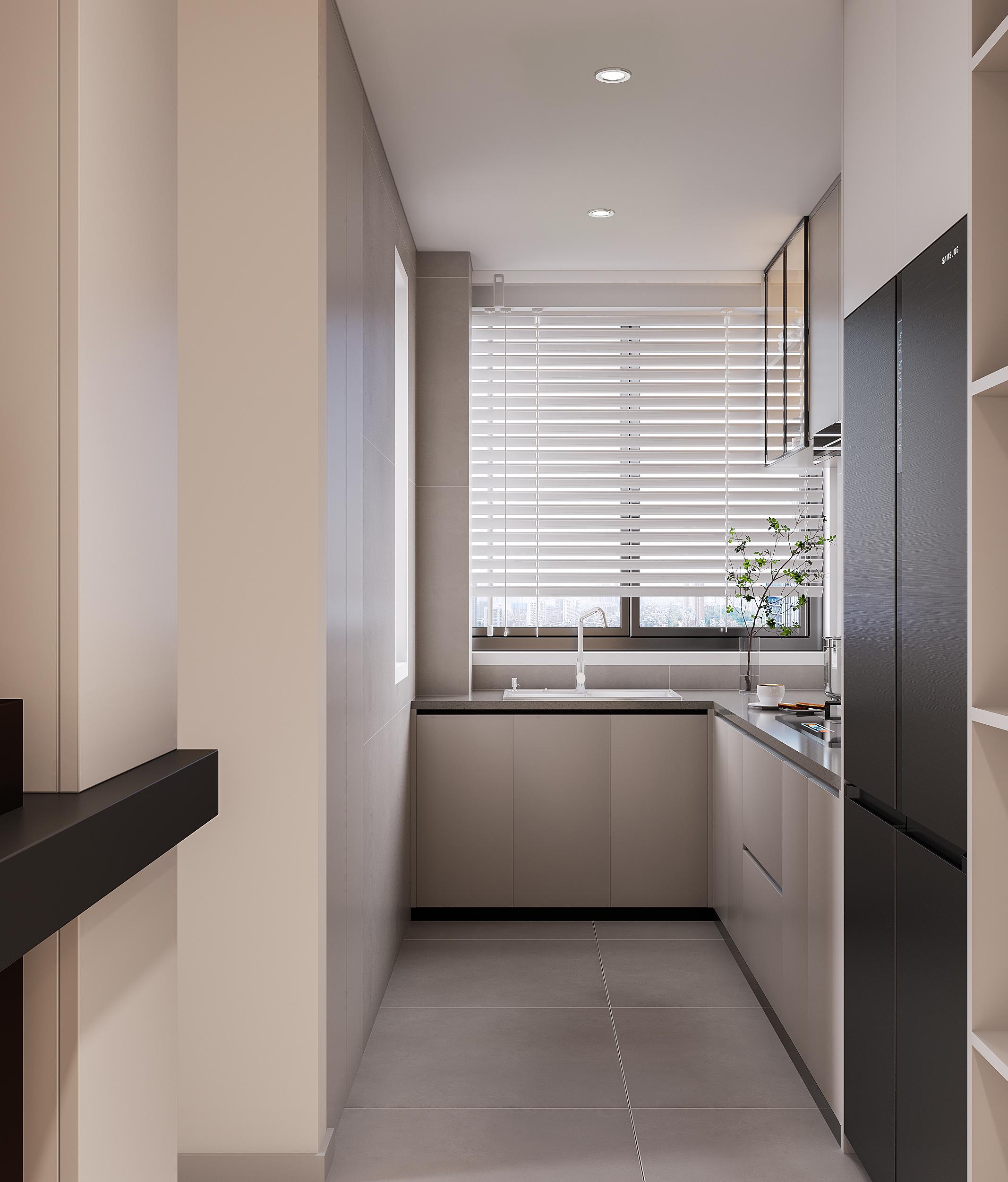 暖灰色,是介于白色與深灰之間的一種柔和色調(diào)。它既有灰色的低調(diào)與內(nèi)斂,又帶有溫暖的質(zhì)感,非常適合打造溫馨而復古的居住環(huán)境。暖灰色墻面可以與木質(zhì)元素、復古紋理的瓷磚相得益彰,營造出一種歲月靜好的感覺。