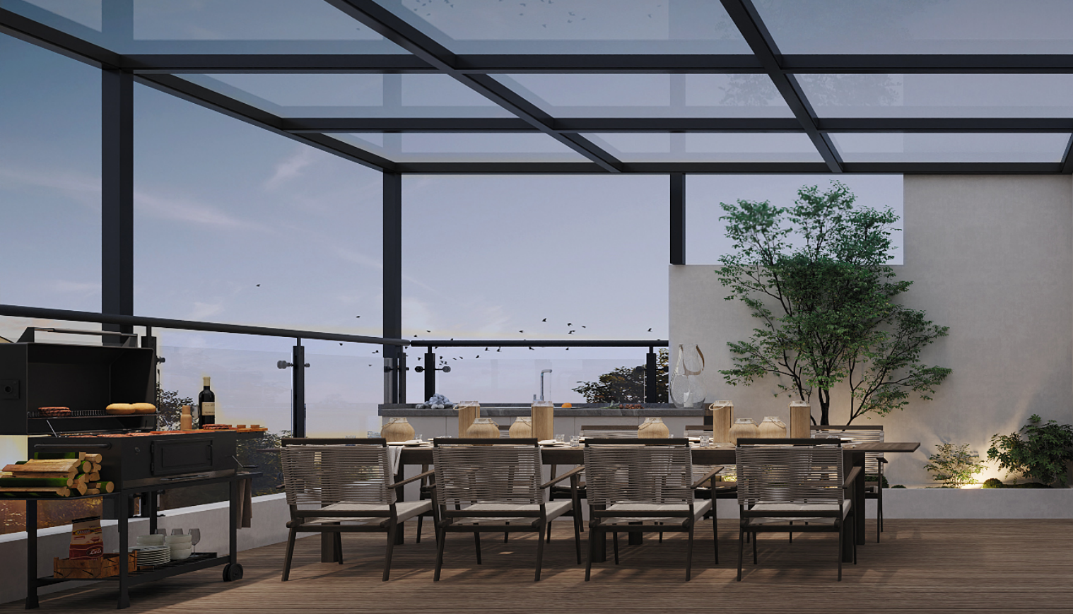 戶外庭院:以白墻為背景,宛如一幅天然的畫布。綠植與燈光巧妙結(jié)合,白天,陽光灑在綠植上,生機(jī)勃勃;夜晚,燈光亮起,映照出綠植的婀娜姿態(tài),營造出自然舒適的畫面。木色地板自然美觀,與室內(nèi)的原木色元素相呼應(yīng),使整個空間內(nèi)外相連。居住者身處其中,能夠自由地在自然與建筑之間切換,既能盡情享受現(xiàn)代簡約生活的便捷與時尚,又能深切感受到自然的清新與寧靜,真正實現(xiàn)了建筑與自然的和諧共生。