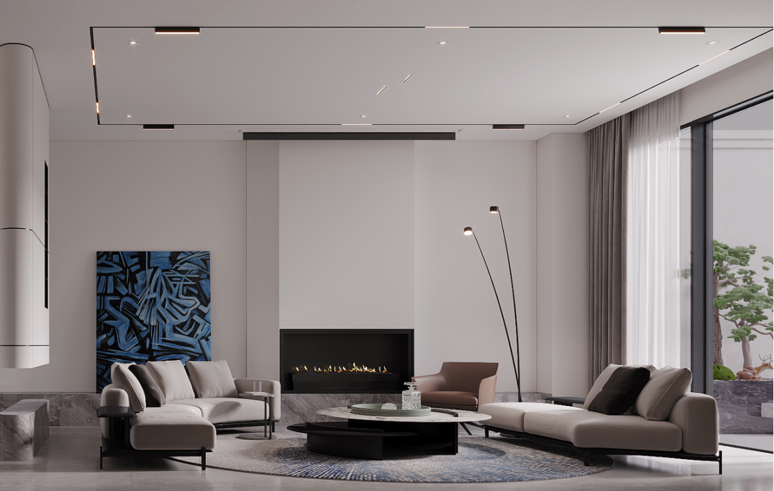 整體空間通常以白色、灰色、黑色等中性色調(diào)為主調(diào)。白色的墻面、灰色的沙發(fā)與地毯、黑色的金屬燈具與拉手……偶爾,也會融入一些低飽和度的木色元素,如淺橡木色的地板或胡桃木色的茶幾,為這清冷的色調(diào)世界注入一絲自然的溫暖與生機(jī),讓空間更具親和力與生活氣息。
