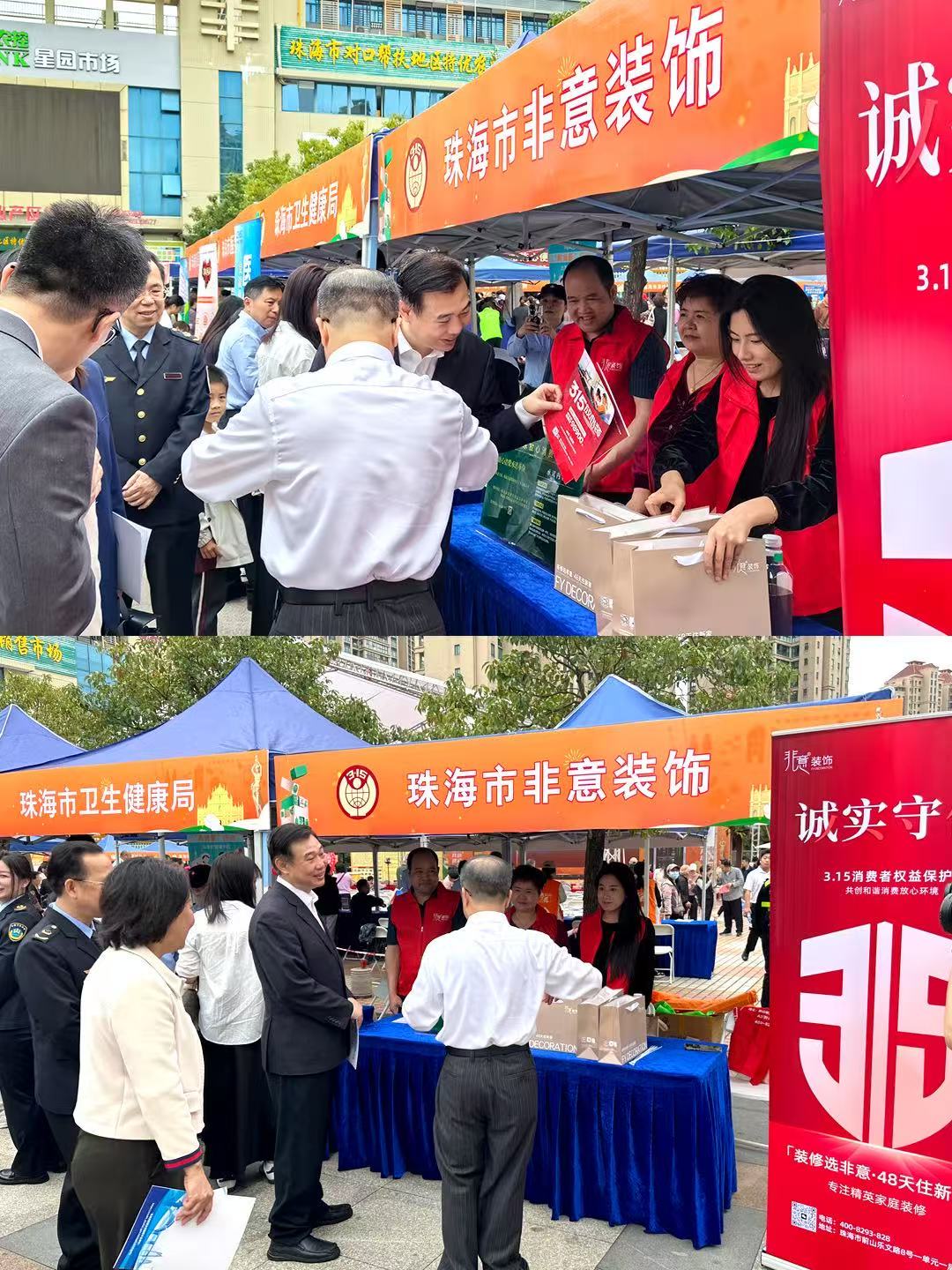 珠海市2025年“3.15”國際消費者權益日活動現(xiàn)場,非意裝飾總經(jīng)理賀巧作為誠信示范企業(yè)代表與廣東省珠海市政府副市長黃振球,珠海市市場監(jiān)督管理局副局長趙文樂、鄭國慶,珠海市消費者協(xié)會主任李志等領導展開深度互動。