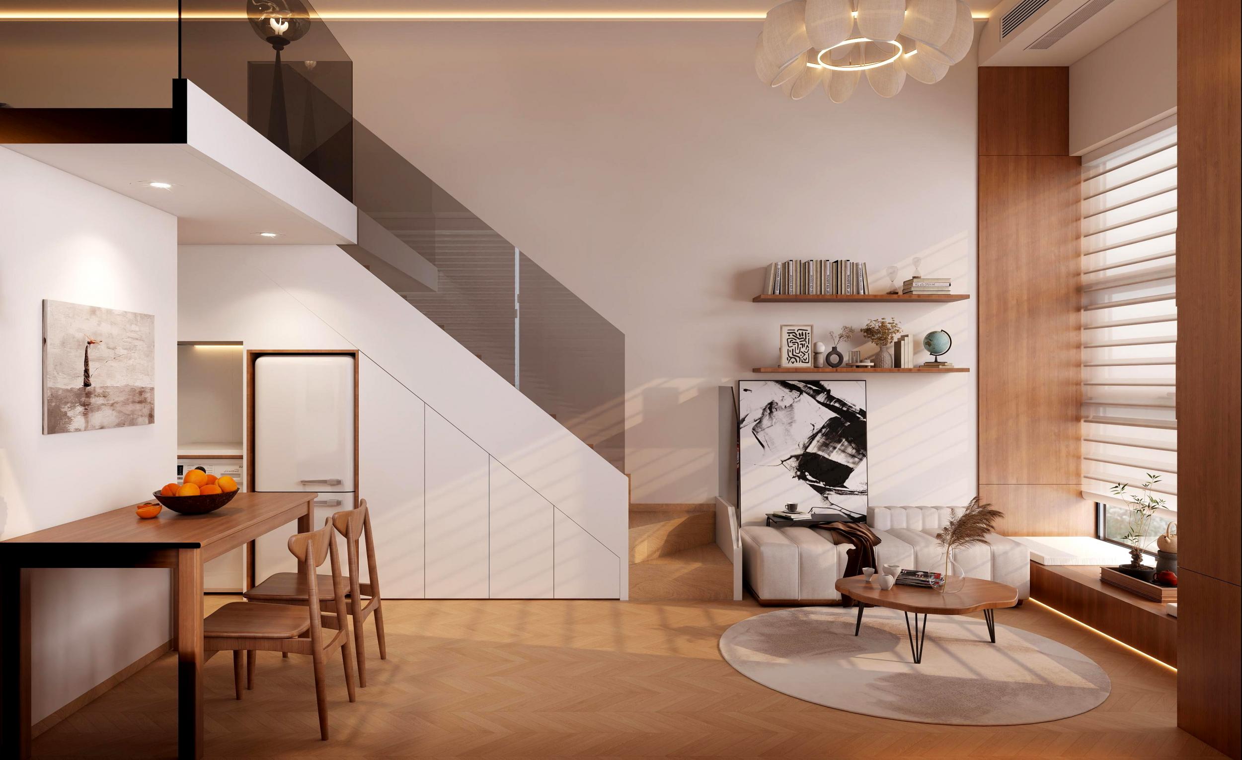 復(fù)式住宅的垂直特性,使其天然具備“動靜分離”的優(yōu)勢。設(shè)計師需根據(jù)家庭成員的生活習(xí)慣,對空間進(jìn)行立體化分層: