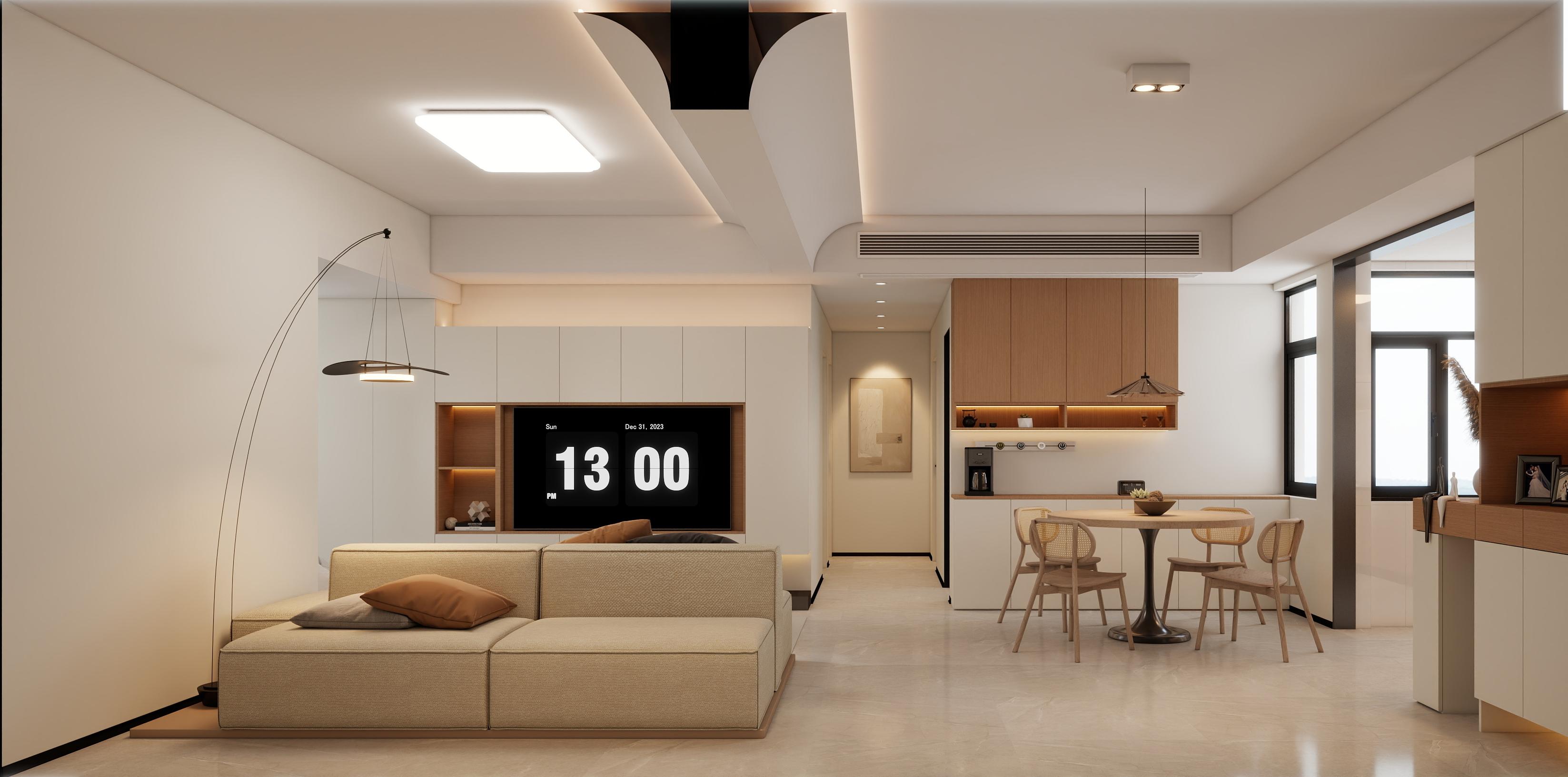 電視背景墻采用簡(jiǎn)潔的設(shè)計(jì),用木質(zhì)材料打造收納柜,既可以存放物品,又能作為展示空間。下方設(shè)置懸空的電視柜,方便打掃,也增加了空間的輕盈感??蛷d的照明選擇柔和的燈光,如吊燈、壁燈和落地?zé)粝嘟Y(jié)合,營(yíng)造出溫馨的夜間氛圍。