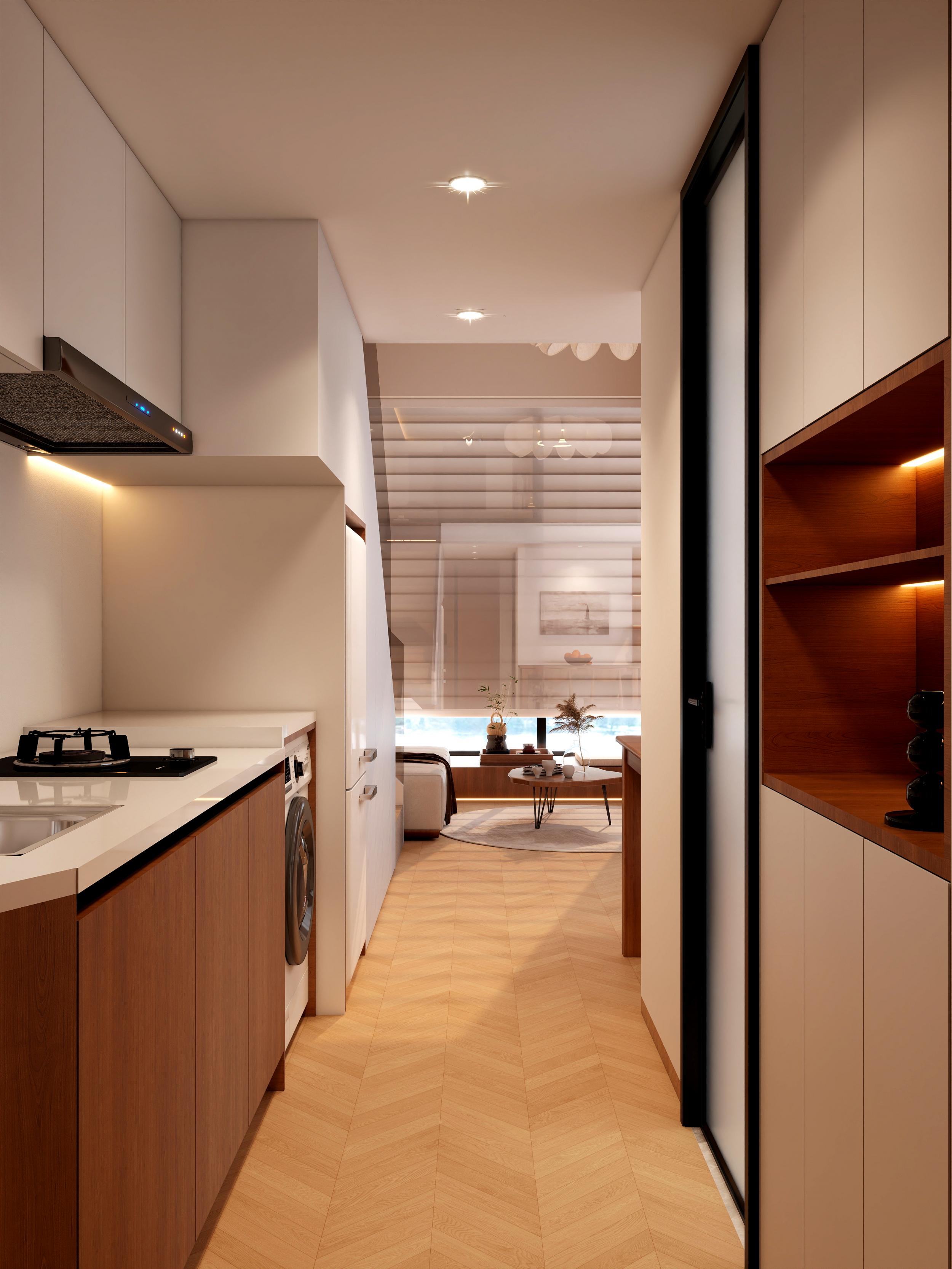 通風(fēng)方面,復(fù)式公寓容易形成“上下溫差”,夏天樓上熱、樓下涼,冬天反過(guò)來(lái)。裝修時(shí)可以考慮安裝新風(fēng)系統(tǒng)或排氣扇,保持空氣流通。如果廚房在樓下,油煙機(jī)一定要選吸力大的,避免油煙飄到樓上。