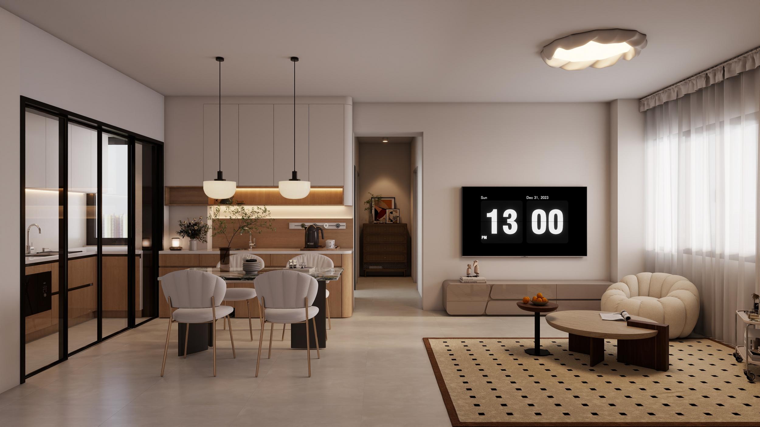 現(xiàn)代簡(jiǎn)約風(fēng)格是當(dāng)下非常受歡迎的一種風(fēng)格。它追求簡(jiǎn)潔明快,摒棄了過多的裝飾和復(fù)雜的造型,注重空間的利用和功能的合理性。在色彩搭配上,通常以黑白灰為主色調(diào),再搭配一些明亮的色彩作為點(diǎn)綴,營(yíng)造出時(shí)尚、大氣的氛圍。家具的選擇也偏向簡(jiǎn)約,線條流暢,沒有過多的雕花和裝飾。這種風(fēng)格適合小戶型或者喜歡簡(jiǎn)潔生活的人,它能讓空間看起來更加寬敞明亮,給人一種輕松自在的感覺。