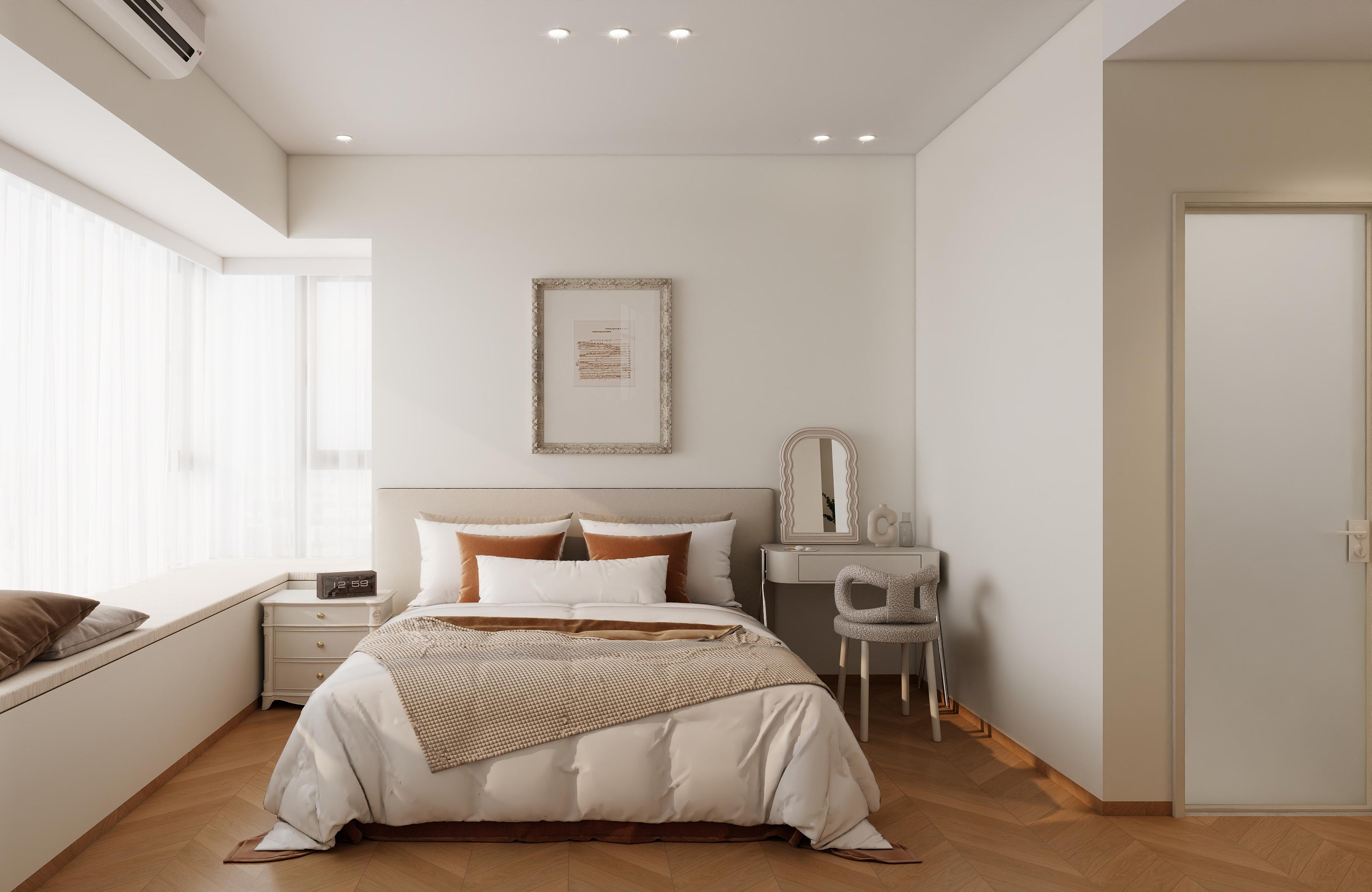 在細(xì)節(jié)處理上,法式奶油風(fēng)同樣不容忽視。它注重每一個細(xì)微之處的精致與考究,從墻面的線條裝飾到家具的雕花設(shè)計(jì),從燈具的造型選擇到裝飾品的擺放位置,都經(jīng)過精心策劃與搭配。墻面的線條裝飾多采用簡潔流暢的直線或曲線,既不會過于繁復(fù),又能為空間增添一份優(yōu)雅與動感。家具的雕花設(shè)計(jì)則更加注重細(xì)膩與精致,無論是床頭板的曲線雕花,還是餐桌腿的立體雕花,都展現(xiàn)出匠人的精湛技藝與對美的追求。燈具的選擇上,法式奶油風(fēng)傾向于使用造型簡約而不失設(shè)計(jì)感的款式,如球形吊燈、壁燈等,它們以柔和的光線照亮空間,營造出一種溫馨而浪漫的氛圍。而裝飾品的擺放,則遵循“少而精”的原則,幾幅簡約的藝術(shù)畫、幾盆綠植或是一束鮮花,都能成為空間中的亮點(diǎn),為整體風(fēng)格增色不少。
