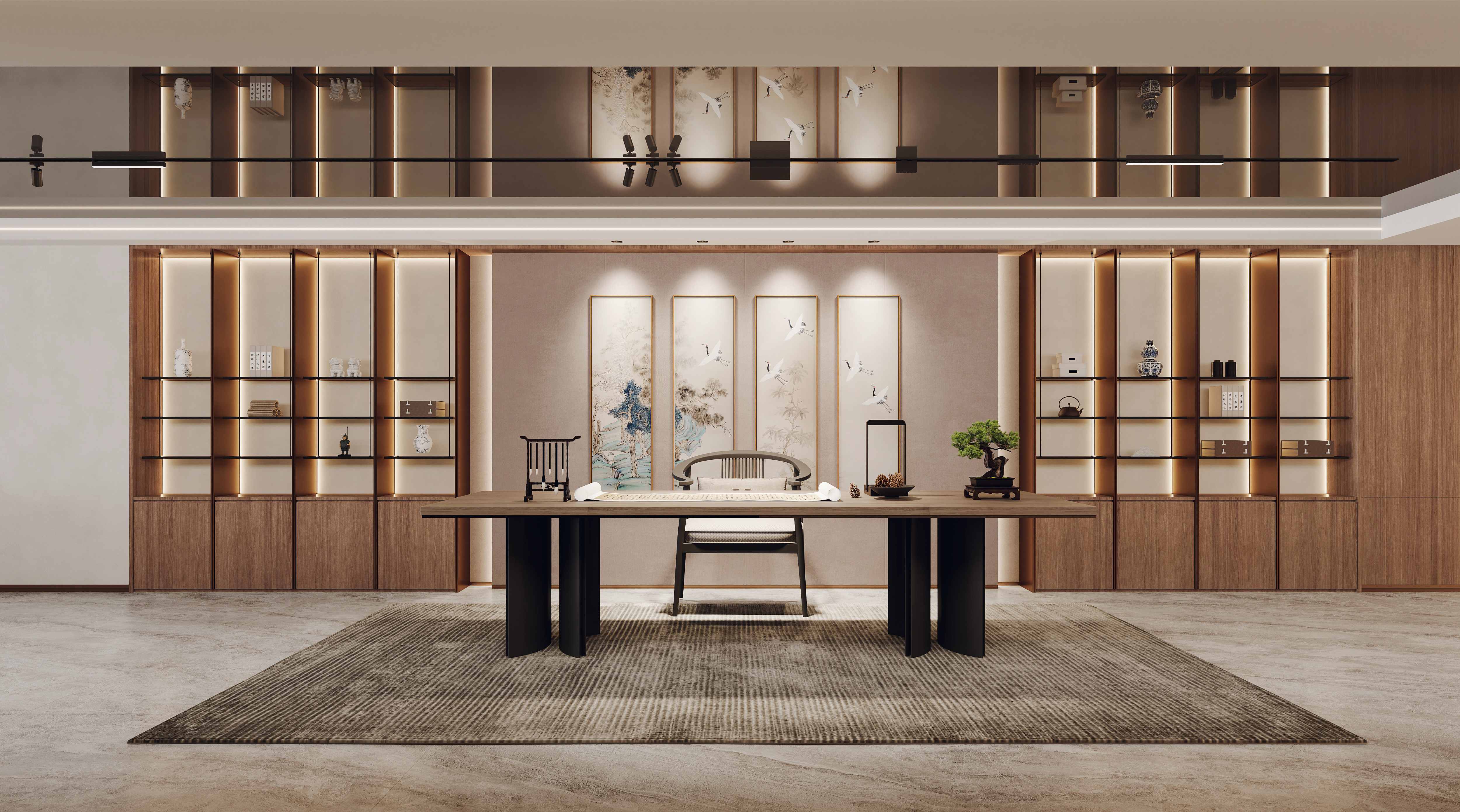 軟裝方面,新中式風(fēng)格講究的是“少而精”。不會(huì)像有些風(fēng)格那樣,把家里堆得滿滿當(dāng)當(dāng)?shù)模菚?huì)選擇一些有代表性的裝飾品來點(diǎn)綴,比如一幅山水畫、一件瓷器、一盆盆景,或者是幾幅書法作品。這些裝飾品雖然不多,但每一件都很有講究,既能體現(xiàn)出主人的品味,又能讓整個(gè)空間顯得更加有文化氣息。