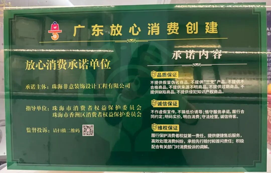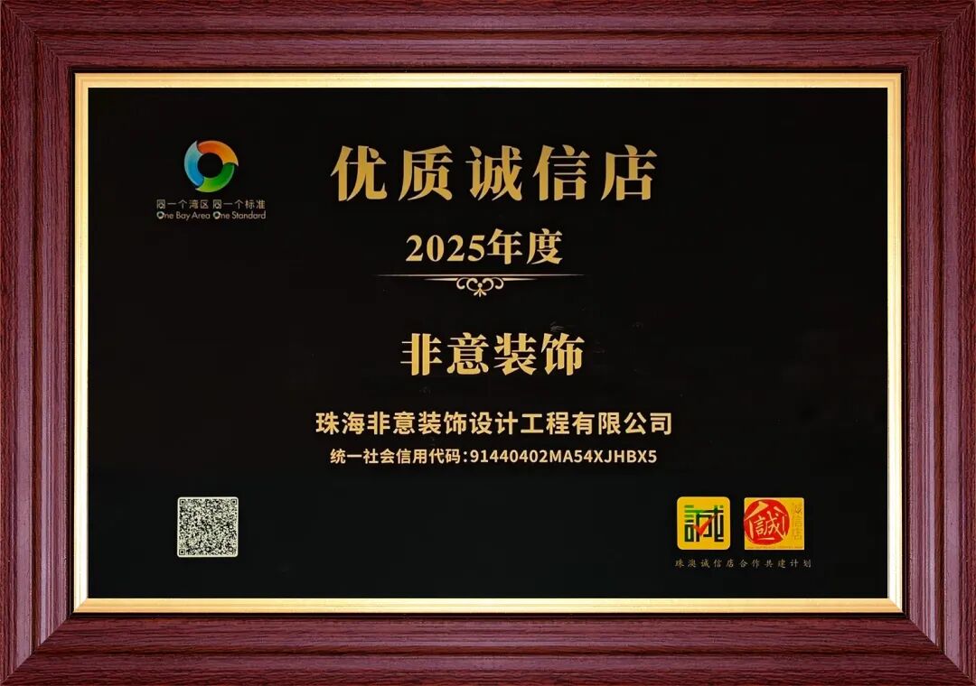 非意裝飾迎來(lái)成立第 13 年,逆勢(shì)之中,穩(wěn)步前行。2024-2025連續(xù)獲評(píng) 「315 廣東放心消費(fèi)承諾單位」,2025年底榮獲 「珠港澳優(yōu)質(zhì)誠(chéng)信店」 稱號(hào)。